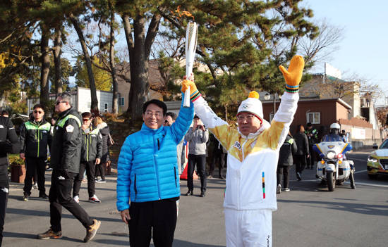 지난 11월1일부터 시작된 평창 동계올림픽 성공을 기원하는 성화 봉송이 순천시에 이어 21일 강진군에 성화가 도착한 것.