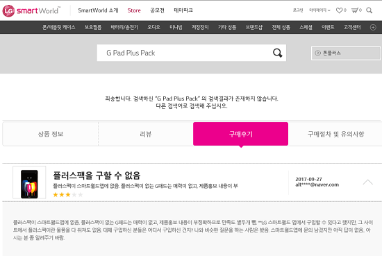 특히 플러스 팩 또한 지난 9월부터 'LG 스마트월드 앱'에 목록조차 없어 구매할 길이 없다는 소비자 비난이 빗발치고 있다.