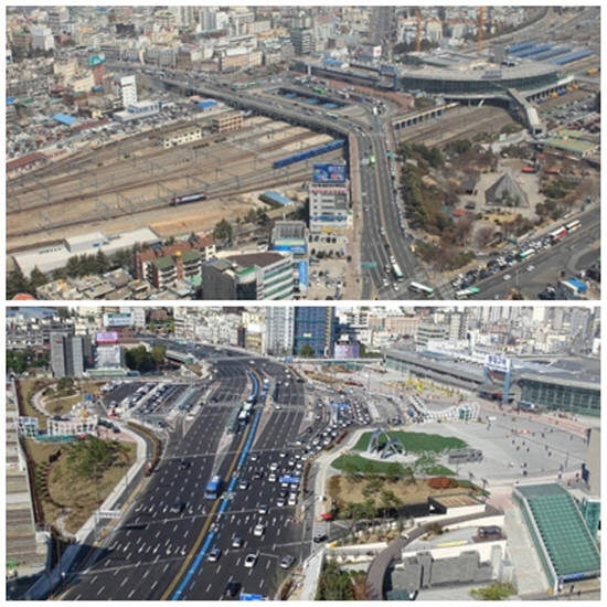 동대구역고가교 확장공사는, 국비 1524억원을 투입해 전국 최초로 7만3000㎡(2만2000평) 규모의 철도선로를 복개해 대규모 광장(2만6000㎡)을 조성하고 기존 왕복6차로인 동대구로를 왕복 10차로(4만7000㎡)로 확장한 사업이다.