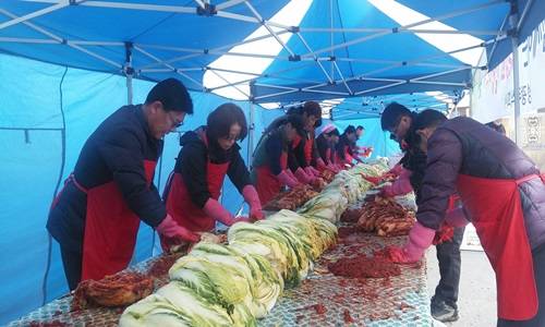 지난 18일 ㈜성광 사무실 옆에서 열린 이날 행사에는 김종현 대표를 비롯한 임직원 30여명이 참여해 배추 300포기의 김장을 담그며 구슬땀을 흘렸다.