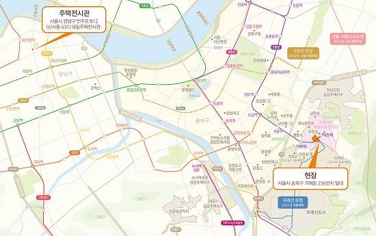 e편한세상 송파 파크센트럴 견본주택은 서울 강남구 언주로 812(도산공원사거리 인근)에 위치하며 오는 12월8일 개관한다. 입주는 2020년 6월 진행될 예정이다.