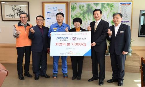 [프라임경제] 포스코 광양제철소(소장 김학동)가 전남드래곤즈 축구단과 함께 23일 광양시청에서 '감사나눔 희망의 골' 기부 행사를 진행하고 광양쌀 7000kg을 광양시사랑나눔복지재단에 전달했다.