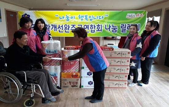 24일 완주군에 따르면 생활개선연합회는 이달 22일 운주면에 위치한 '베데스다의 집'을 방문해 위문품과 위로금을 전달했다. 이날 전달식을 시작으로 생활개선연합회는 연말 나눔행사 릴레이 이어갈 예정이다.