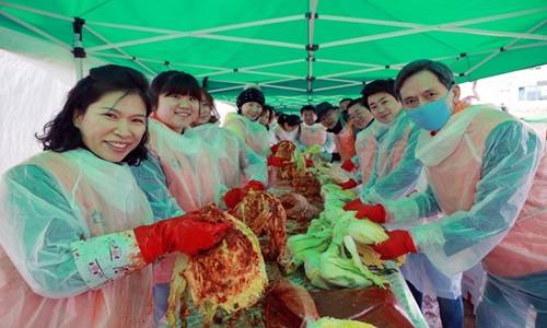 지난 24일 신협봉사단 임직원 100여명이 순천시지역아동센터 종사자 40여명과 함께 조례호수공원 일원에서 전개된 김장나눔 봉사활동은 전남지역 신협두손모아봉사단이 주관하고 신협사회공헌재단이 후원했다. 직접 담근 김장김치 6000kg을 그늘진 곳에 따스한 온정을 나누고자 전남지역 지역아동센터, 저소득가정, 장애인 등에 전달했다.
