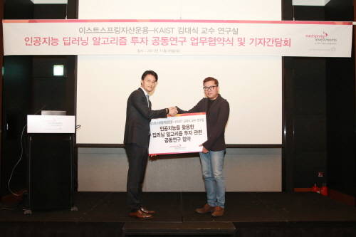 이스트스프링자산운용은 28일 여의도에서 기자간담회를 열어 국내 대표 인공지능 과학자 중 하나인 카이스트(KAIST) 전기 및 전자공학부 김대식 교수 연구실과 딥러닝 알고리즘 투자 관련 공동연구 업무 협약식을 가졌다고 밝혔다.