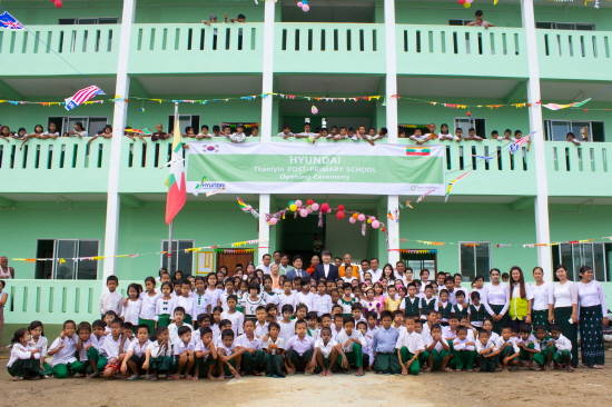 현대건설은 지난 6월 미얀마 딸린타운십 상아티마을에서 현대건설 관계자, 정부 관리자, 학교 교장 및 교직원, 학생 등 800여명이 참석한 가운데 초등학교 완공식을 가졌다.