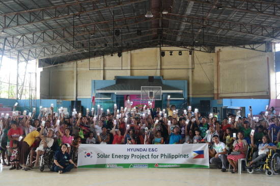 현대건설은 지난 6월 필리핀 코르도바 시청 체육관에서 마리 테레스 시토이초 코르도바 시장, 코르도바 시내 저소득 층 주민 등 200여명이 참석한 가운데 태양광 랜턴 500여개를 전하는 희망의 빛 전달식을 가졌다.