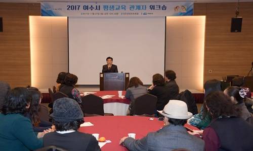 지난 27일 디오션리조트에서 지역 평생교육기관·단체 담당자, 평생학습동아리 회원, 성인문해강사 등 60여명이 참가한 가운데 '2017 여수시 평생교육 관계자 역량강화 워크숍'이 열렸다.