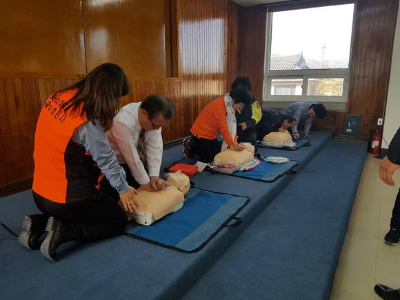[프라임경제] 충남 부여군 옥산면 남·녀의용소방대에서는 지난 29일 옥산면사무소 2층 회의실에서 옥산면 총화협의회 회원 등 30명을 대상으로 심폐소생술 및 응급처치 교육을 실시했다.