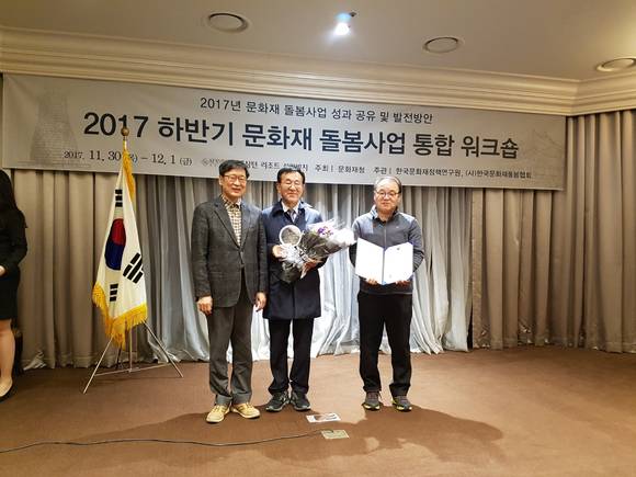 시상식은 11월30일 강원도 고성 켄싱턴 리조트 설악비치에서 개최된 2017하반기 문화재 돌봄사업 통합워크숍에서 진행됐다.