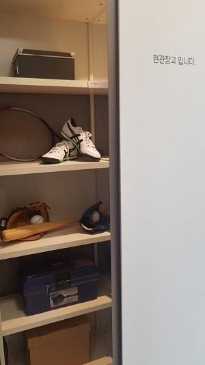 전용면적 84㎡A 유니트를 보면 먼저 다양한 수납공간이 눈에 띈다. 한 쪽 벽면을 차지할 정도의 넉넉한 현관 수납장은 전용면적 84㎡에서는 좀처럼 보기 힘든 설계였다. 관람객들 대부분이 이 수납공간을 만족스러워했다.