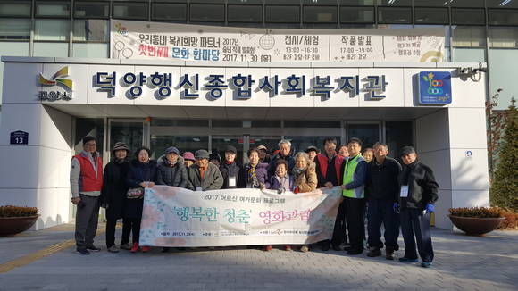 [프라임경제] 경기도 고양시덕양행신종합사회복지관(관장 강영규)은 지난달 30일 한국마사회 일산문화공감센터(센터장 김호균) 지원으로 지역 어르신 여가문화프로그램 '행복한 청춘' 프로그램에 참여하는 어르신 30명과 영화관람 나들이를 다녀왔다.