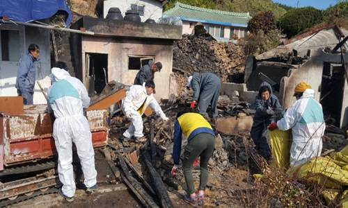 이날 봉사활동 참여자들은 화재 잔해물 철거부터 시작해 도배, 장판 교체, 싱크대 설치 등을 하며 구슬땀을 흘렸다. 김 할머니는 갑작스런 화재로 주택 본채와 창고가 전소돼 거주에 큰 어려움을 겪었다.