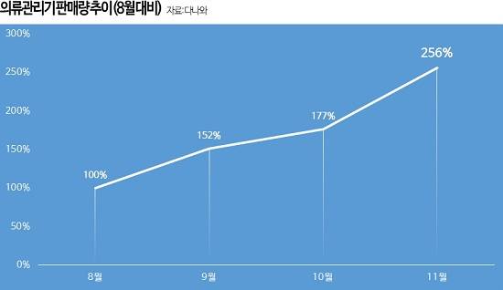 6일 다나와에 따르면 지난 달 온라인 유통시장에서 의류관리기 판매량이 8월 대비 156%, 전년 동기 대비 243% 증가했다.