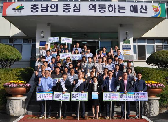 6일 국민권익위원회에서 발표한 '2017년도 공공기관 청렴도 측정 결과'에 따르면 예산군은 외부청렴도 8.03점, 내부청렴도 7.95점으로 종합청렴도에서 전년대비 0.39점 향상된 8.00점을 달성해 각 분야별 모두 2등급을 받는 등 고른 성과를 거뒀다. 충남도내에서는 15개 시·군 중 1위이며, 전국 기초자치단체(군) 82개 평가대상(평균 7.54) 중 7위로 우수한 평가를 받았다.