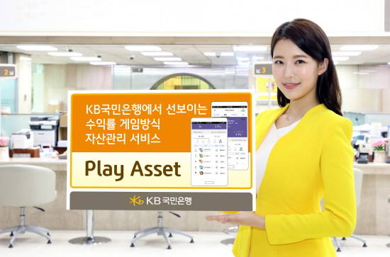 플레이 에셋은 국민은행에서 가입한 △펀드 △예금 △적금 상품의 수익률을 참여자간에 서로 비교하는 랭킹시스템으로 게임적인 요소를 더한 자산관리 서비스다. 이 서비스는 참여자간 펀드가입 현황과 수익률을 비교해 내 자산에 대한 포트폴리오를 재구성하는데 도움을 준다.