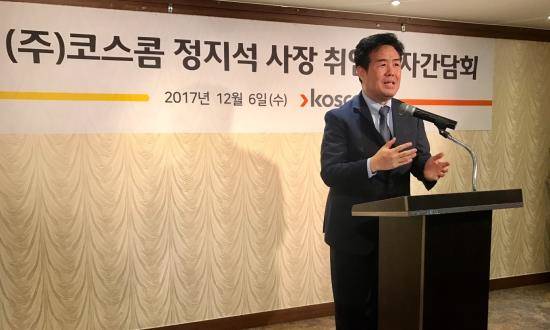 정지석 코스콤 사장은 지난 6일 오후 서울 여의도의 한 식당에서 취임 기념 기자간담회를 열고 이같이 말했다. 이날 간담회에서 정 사장이 가장 강조한 것은 '고객'이었다.