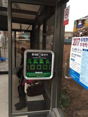 핸드폰 충전기는 대학교와 시장 주변 등 유동인구가 많은 버스정류장을 선정하여 설치했으며, 안드로이드·아이폰·C타입 등을 갖추고 있어 모든 종류의 휴대폰 충전이 가능하다.