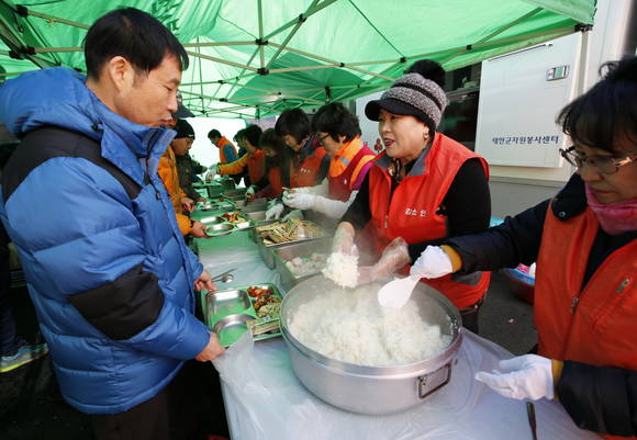 태안군은 유류피해 발생 10주년을 맞은 지난 7일부터 13일까지 7일간 포항시에 '현장출동 재해·재난 봉사단' 소속 자원봉사자와 '사랑의 밥차'를 파견, 지진 피해 복구 장기화로 어려움을 겪고 있는 주민들을 위한 봉사활동을 펼치고 있다.