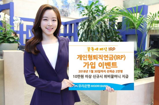[프라임경제] 우리은행은 개인형퇴직연금(IRP)을 가입하는 고객을 대상으로 우리은행 멤버십 포인트인 위비꿀머니를 지급하는 '꿀통에 빠진 개인형퇴직연금(IRP)' 이벤트를 실시한다고 11일 밝혔다.