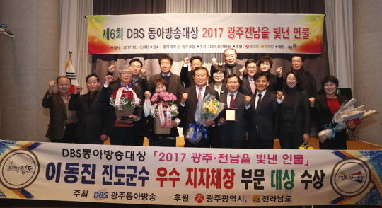 [프라임경제] 전남 진도군 이동진 군수가 13일 국내·외 투자유치 공로로 '2017년 한국의 지방자치 경영대상' 투자확대 부문 대상을 수상했다. 또 12일 제6회 DBS 동아방송대상 '2017 광주·전남을 빛낸 인물' 우수 자치단체장 부문 대상도 수상했다.