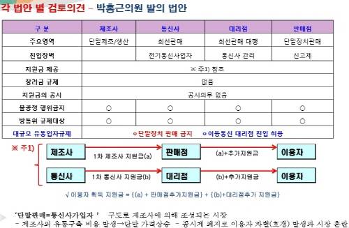 그러면서 "단말기 부문에 대한 지원금 공시의 경우, 영업비밀공개라는 측면에서 위헌 가능성이 있다"며 "이를 감안해 공시에 대한 부문을 포함하지 않았다"고 덧붙였다.