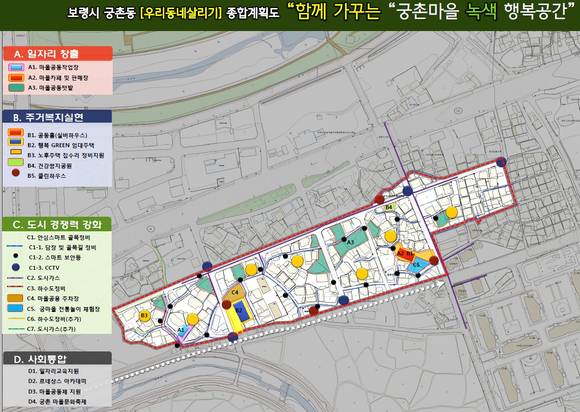 사업 대상지인 궁촌 1·2통은 대천IC를 통해 보령으로 진입하는 첫 마을 주거지임에도 20년 이상 노후 불량건축물이 63%에 이르며, 하수도·도시가스 등 생활 인프라시설이 취약해 주민들이 거주 환경에 불편을 느낀 지역이다.
