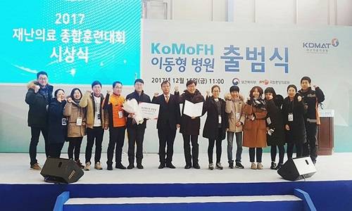 2017년 재난의료종합훈련대회는 지난 14일 충남 천안의 재능교육 연수원에서 개최된 전국 17개 시도의 보건소, 소방, 권역응급의료센터를 대상으로 진행됐다.