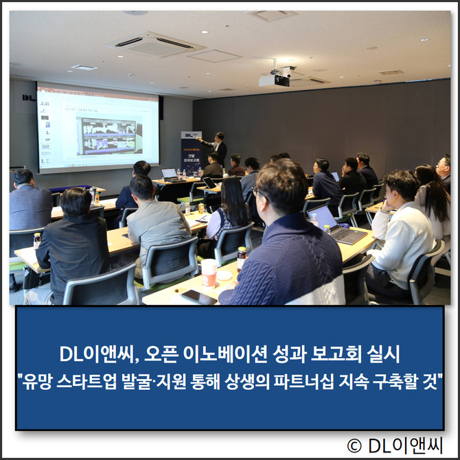 DL이앤씨(375500)가 지난 5일 디타워돈의문 사옥에서 오픈 이노베이션 성과 보고회를 실시했다.