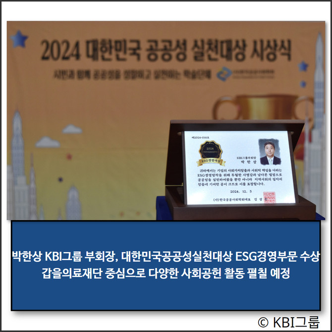 박한상 KBI그룹 부회장이 지난 5일 열린 2024년 대한민국공공성 실천 대상 시상식에서 ESG경영대상 분야에 선정됐다.