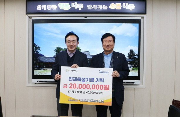 [프라임경제] 전남 나주시는 다도면에 위치한 해피니스컨트리클럽(주) 양진석 회장이 지난 5일 지역인재육성기금 2000만원을 (재)나주교육진흥재단에 기탁했다고 6일 밝혔다.