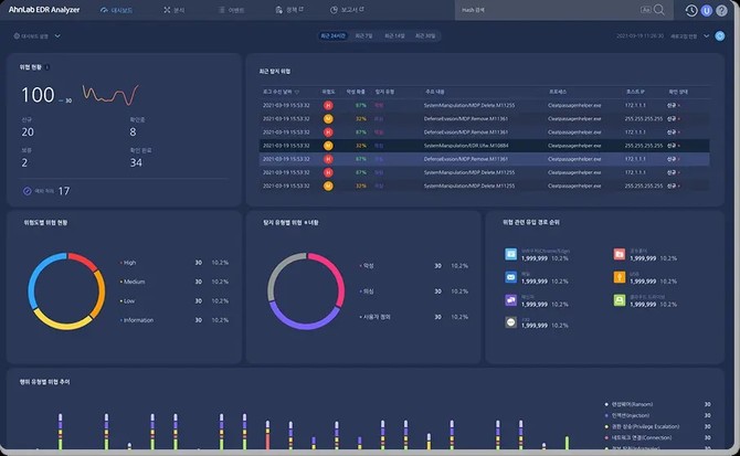 전용 콘솔인 '안랩 EDR 애널라이저'의 관리 효율성도 강화했다. 안랩은 사용자가 축적되는 데이터를 효율적으로 관리할 수 있도록 위협 로그 데이터의 중요도에 따라 서버내에서 분리해 관리할 수 있는 기능을 추가했다.