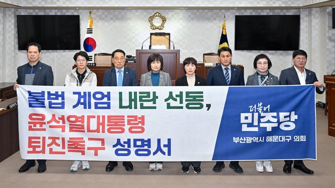 민주당 부산진구의회(원내대표 최정웅) 의원들은 "국회의 탄핵절차에 모든 힘을 모으며 윤석열 대통령을 탄핵하지 않을 경우, 민주당 의원들은 국민의 뜻에 따라 즉시 탄핵 절차에 돌입할 것"이라면서 "민주당 부산진구의원들은 민주주의와 헌정질서를 지키기 위해 부산진구민과 끝까지 함께할 것"이라고 결의했다.