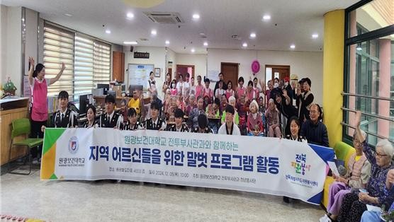 [프라임경제] 원광보건대학교(총장 백준흠) 전투부사관과 봉사동아리가 지난 5일 익산시 원광효도마을 '사은의 집'에서 어르신들을 위한 뜻깊은 말벗 봉사활동을 진행, 눈길을 끌고 있다.