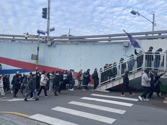 [프라임경제] 윤석열 대통령에 대한 탄핵소추안 표결을 앞두고 7일 오후 당산 방향 서울교 밑 지하차도에도 탄핵 촉구 시위에 참석하려는 인파가 몰려있다.