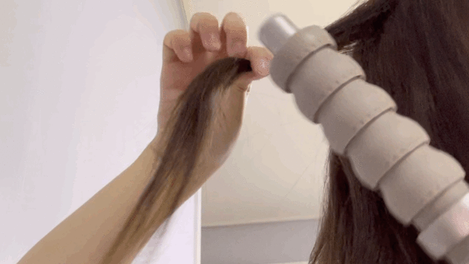 스타일링 툴별로 특징을 보자면, '컬링 배럴'은 곡면을 타고 모발을 끌어당겨 컬이 세팅되는 '코안다' 효과로 설계됐다. 머리카락에 갖다 대기만 해도 컬이 만들어진다. 가장 눈여겨본 것은 일반적인 코안다 효과 드라이기와 달리, 울퉁불퉁하게 생긴 점이다. 외형 덕분에 머리카락이 말려서 밖으로 이탈하지 않고 꽉 잡아줘 더 빠르고 정확하게 컬을 넣을 수 있다. 바람의 방향에 따라 맞는 툴로 교체해 컬을 넣으면 된다.