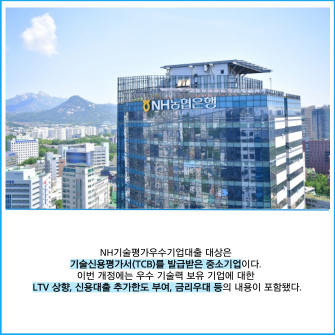 [프라임경제] NH농협은행은 우수한 기술력을 보유한 혁신 기업들에 대한 금융지원을 강화하기 위해 기술금융 전용상품인 'NH기술평가우수기업대출'을 개정 출시한다고 10일 밝혔다.