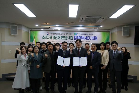 대구농수산물유통관리공사와 국립농산물품질관리원 경북지원은 10일 '대구시민에게 안전한 농산물 공급과 지역생산자 보호'를 위한 업무협약을 체결했다.