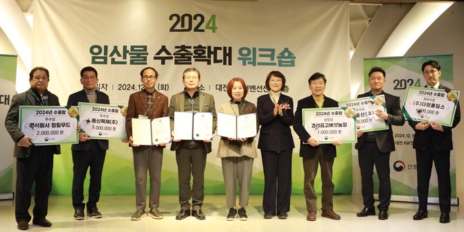 이번 행사에서는 올해 임산물 수출현황과 해외시장 개척 성과를 공유하고, 내년도 수출 확대 전략을 논의했다. 특히 밤, 대추, 표고 등 주요 임산물 수출 확대에 기여한 유공자 3명을 선정해 포상하고, 해외시장 수출실적이 우수한 5개 기업에 수출탑을 수여했다.