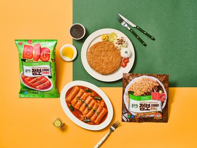 첫 번째로 풀무원은 롯데마트와 협업한 '점보 시리즈'를 론칭했다. 빅 사이즈 제품 특유의 식감과 크기의 매력을 강조한 간편식 '점보 밀떡볶이(383.5g)', '점보 돈까스(300g)'를 롯데마트에 단독 출시했다. 신제품은 오는 12일부터 전국 롯데마트, 롯데슈퍼 전 점에서 만나볼 수 있다.