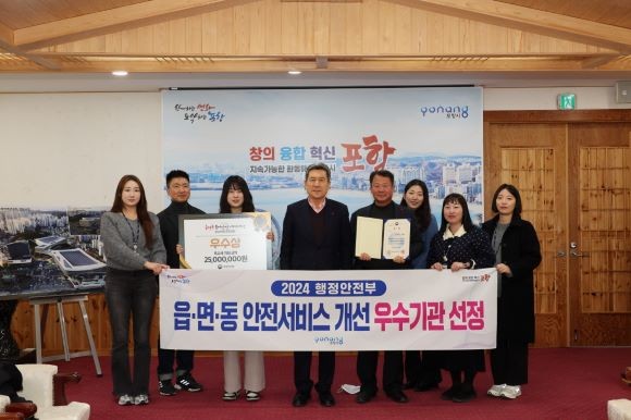 전국 시군을 대상으로 읍면동 현장의 복지와 안전서비스 개선시책을 적극성, 효과성, 창의성, 확산가능성 분야별로 심사해 행안부는 지난 11월 말 선정 결과를 발표했으며, 포항시는 '포항형 현장중심 안전시책'을 인정받으며 우수기관으로 선정됐다.