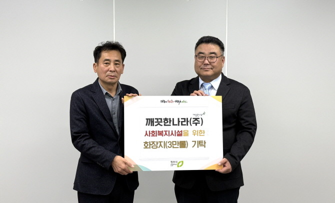 깨끗한나라가 지난 11일 연말을 맞아 청주시 관내 취약계층을 위해 1800만원 상당 두루마리 화장지(3만롤)를 기부했다고 밝혔다.