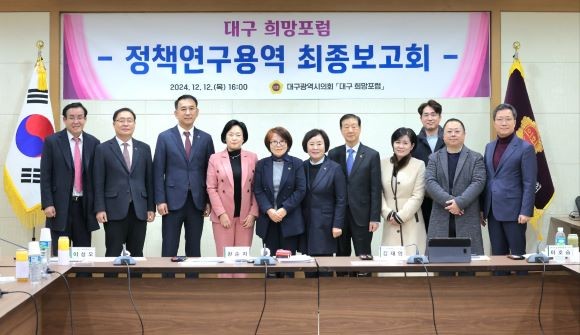 '대구 희망포럼'은 대구시의회 의원연구단체로 지역 정책 발굴 및 제도개선 방안을 연구해 미래세대를 위한 바람직한 사회환경을 만들고자 올해 9월에 대구시의회 의원 9명으로 결성됐다.