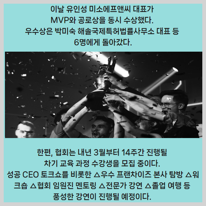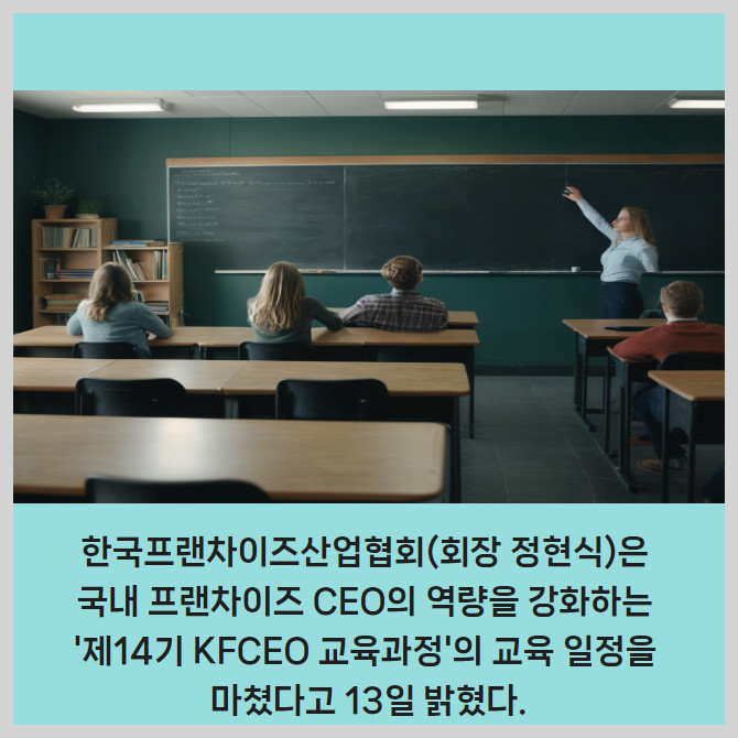 [프라임경제] 한국프랜차이즈산업협회(회장 정현식)은 국내 프랜차이즈 CEO의 역량을 강화하는 '제14기 KFCEO 교육과정'의 교육 일정을 마쳤다고 13일 밝혔다.