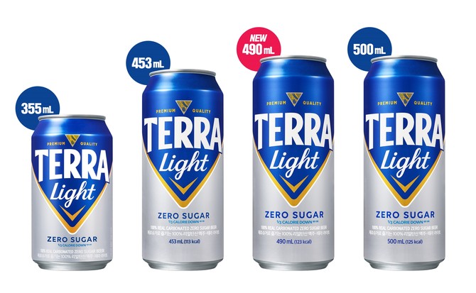 기존 테라 라이트는 △유흥용 병(500㎖) △가정용 병(500㎖) △캔(355㎖, 453㎖, 500㎖) △페트(1600㎖)를 선보이고 있다. 이번 신규 용량 제품 출시를 통해 캔 라인업은 355㎖, 453㎖, 490㎖, 500㎖의 총 4종으로 완성돼 점점 세분화되고 있는 소비자의 니즈를 더욱 만족시킬 수 있게 됐다.