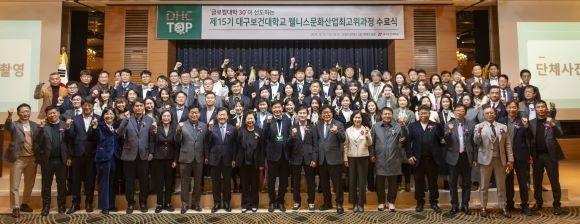 [프라임경제] 대구보건대학교(총장 남성희)가 지난 12일 호텔라온제나 5층 에떼르넬홀에서 웰니스문화산업최고위과정(이하 최고위과정) 15기 수료식을 성황리에 마쳤다.