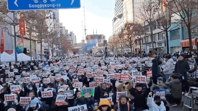 [프라임경제] 14일 오후 대구 동성로 거리에 윤석열 대통령 탄핵을 촉구하는 시민들로 가득하다.
