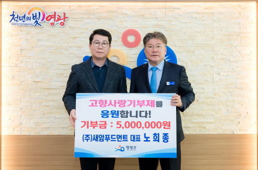 [프라임경제] ㈜새암푸드먼트 노희종 대표가 최근 영광군을 방문해 고향사랑기부금 최고액인 500만원을 기탁했다.