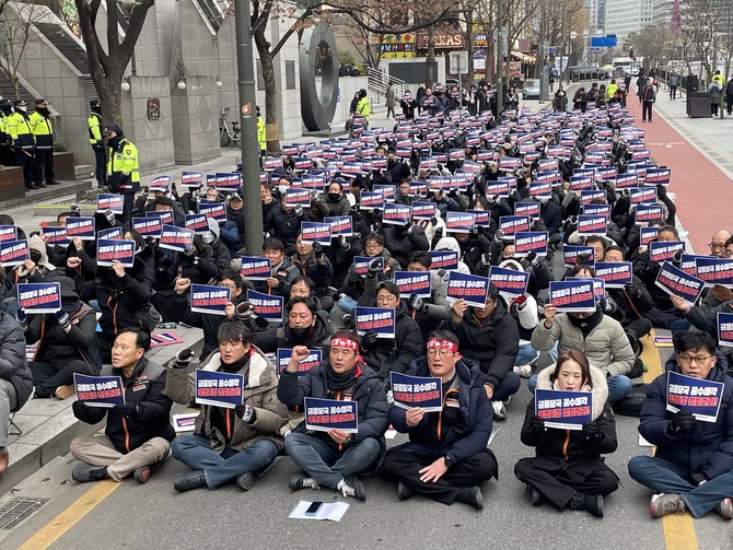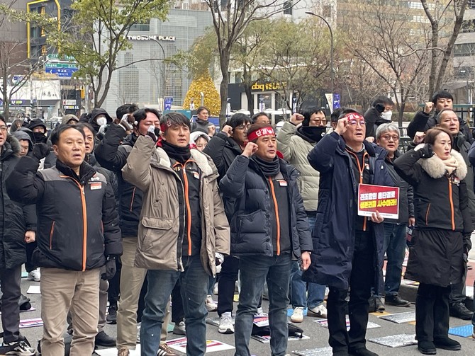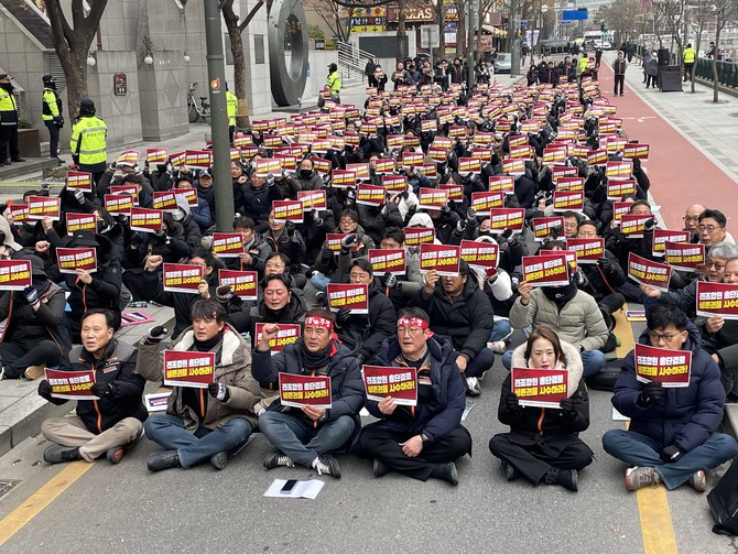 [프라임경제] 전국사무금융서비스노동조합 MG손해보험지부는 16일 예금보험공사 앞에서 메리츠화재 우선협상대상자 지정 철회를 위한 투쟁 결의대회를 열었다. 이 자리에서 배영진 MG손보지부장은 매각을 진행하는 금융위원회와 예보, 우협대상자로 지정된 메리츠화재를 규탄하며 삭발 시위를 감행했다. 노조 측은 이날 결의대회에 400여명의 노동자들이 모인 것으로 추산하고 있다.