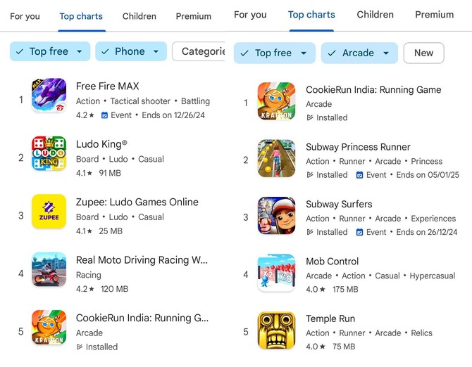 인도는 안드로이드 OS 비중이 90% 이상인 시장으로, 쿠키런 인도의 구글플레이 순위가 집계되자마자 상위권에 진입한 것이 고무적이라는 평가다.